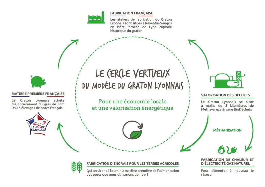 Mais aussi une réduction de l’empreinte carbone grâce à l’optimisation logistique en réduisant fortement les distances de transport de déchets : le Graton Lyonnais se trouve à moins de 5 kilomètres de Méthavarèze & Isère BioDéchets. - Un enjeu d’économie circulaire en intégrant la transformation des déchets comme dernier maillon de son modèle vertueux 100% local. Ici les ressources sont utilisées de manière efficace et durable.